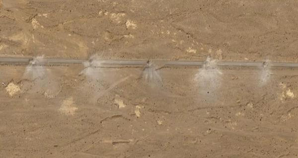 卫星图像显示,在伊斯法罕省中部几条道路上至少有18个弹坑,这些弹坑道路上依次出现,直径约9米,足以摧毁道路,显然是经过精心策划的精准打击。